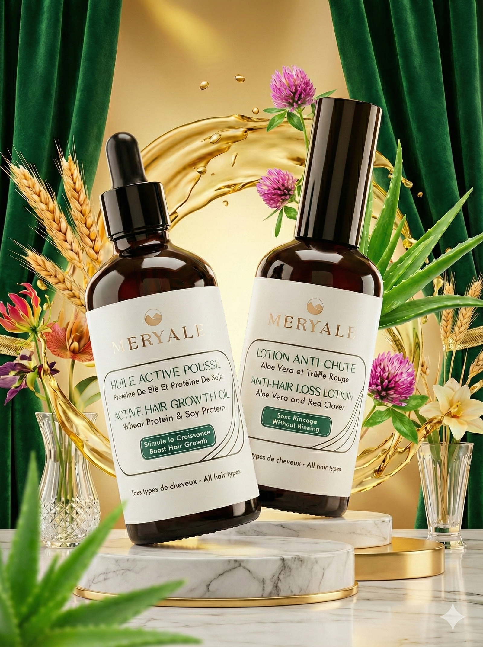 Huile active repousse: Une huile revitalisante, conçue pour activer la repousse capillaire et renforcer la santé de vos cheveux. Une synergie puissante d’ingrédients naturels pour stopper la chute des cheveux et hydrater intensément votre chevelure. Formulée avec soin, cette huile associe les bienfaits des huiles essentielles, comme le romarin, et des huiles végétales, telles que l’huile de sésame, de moutarde, de ricin et de nigelle, ainsi que des protéines de blé et de soja. Elle offre une solution complète pour des cheveux éclatants, hydratés et revitalisés.